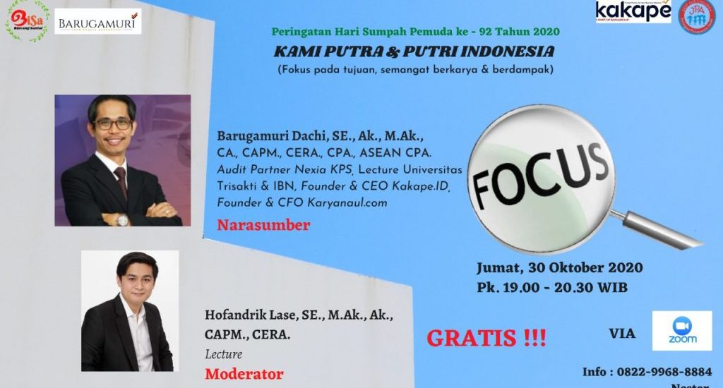 Dalam rangka Peringatan Hari Sumpah Pemuda ke – 92 Tahun 2020, KAKAPE.ID bersama BARUGAMURI akan menggelar webminar digital via ZOOM dengan tema “Peringatan Hari Sumpah Pemuda ke – 92 Tahun 2020 – Kami Putra dan Putri Indonesia (Fokus pada tujuan, semangat berkarya & berdampak)”